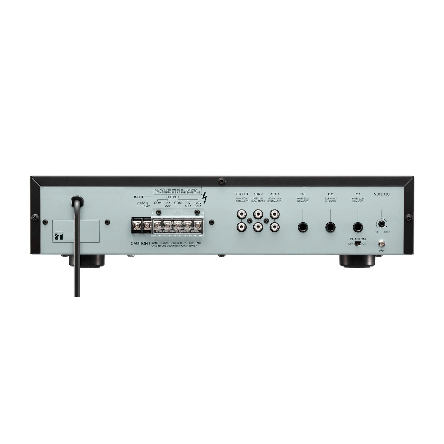 🔹 Salidas para altavoces: 100V (83Ω), 70V (42Ω), baja impedancia (4Ω)