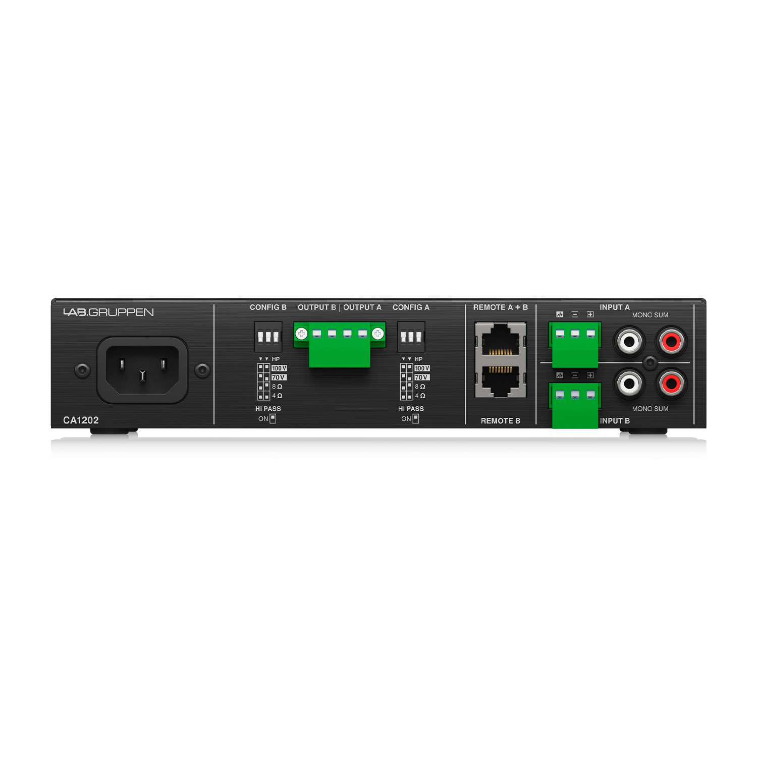 El LAB Gruppen CA1202 es un amplificador comercial de 2 canales que ofrece una potencia de 120W por canal, ideal para aplicaciones profesionales que requieren distribución de audio en múltiples zonas. Su diseño eficiente y silencioso, junto con su capacidad para operar en modos Low-Z (4/8 Ohmios) y High-Z (70/100 V), lo convierten en una solución versátil para diversas instalaciones.