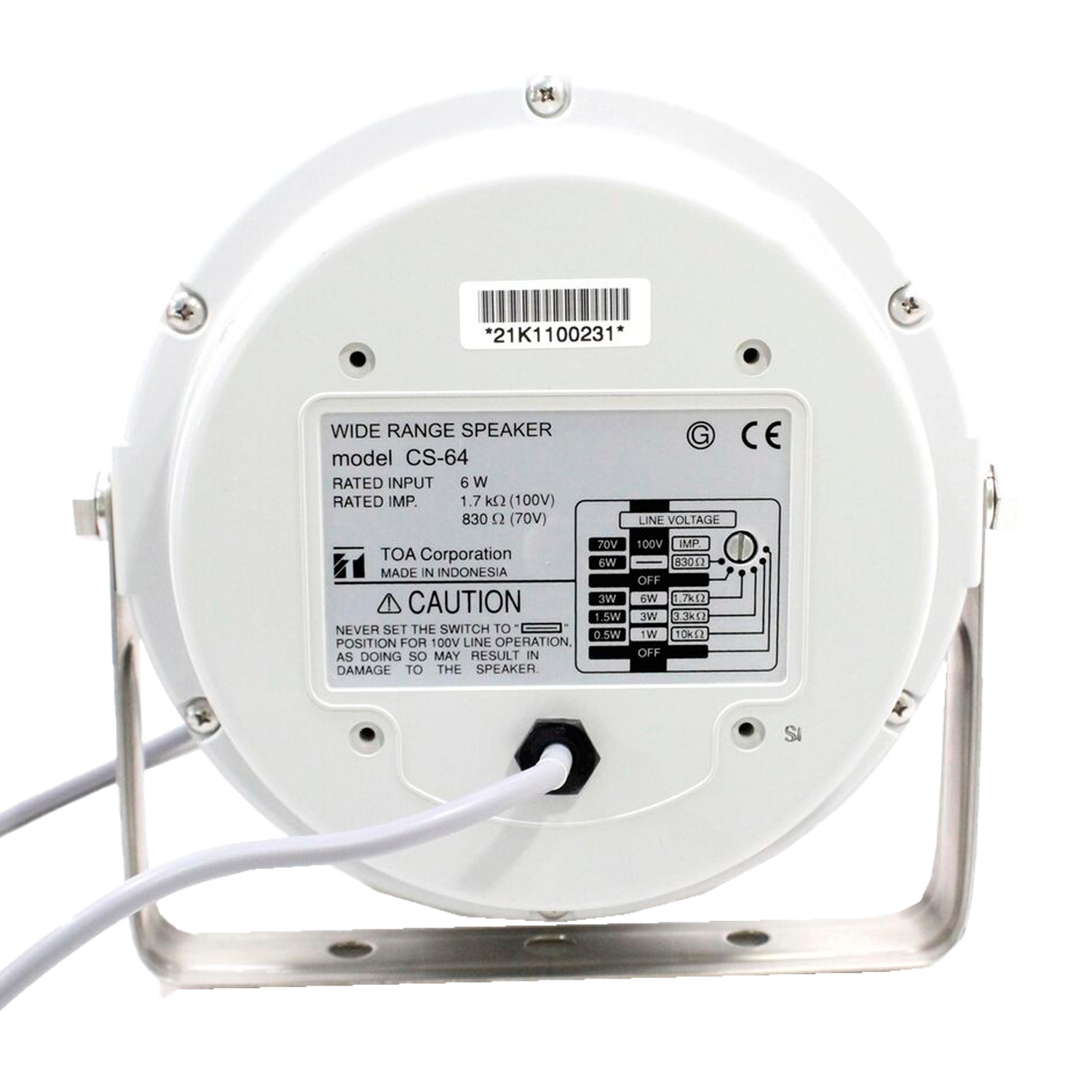 🔹 Impedancia nominal: 100 V: 1.7 kΩ (6 W), 3.3 kΩ (3 W), 10 kΩ (1 W); 70 V: 830 Ω (6 W), 1.7 kΩ (3 W), 3.3 kΩ (1.5 W), 10 kΩ (0.5 W).