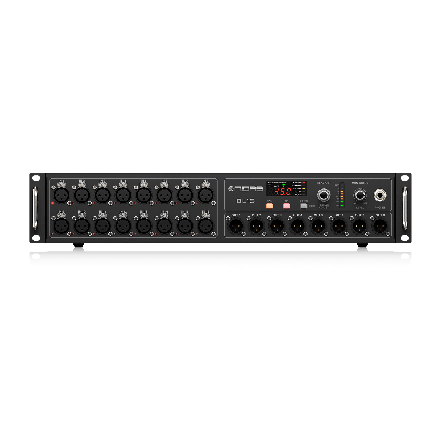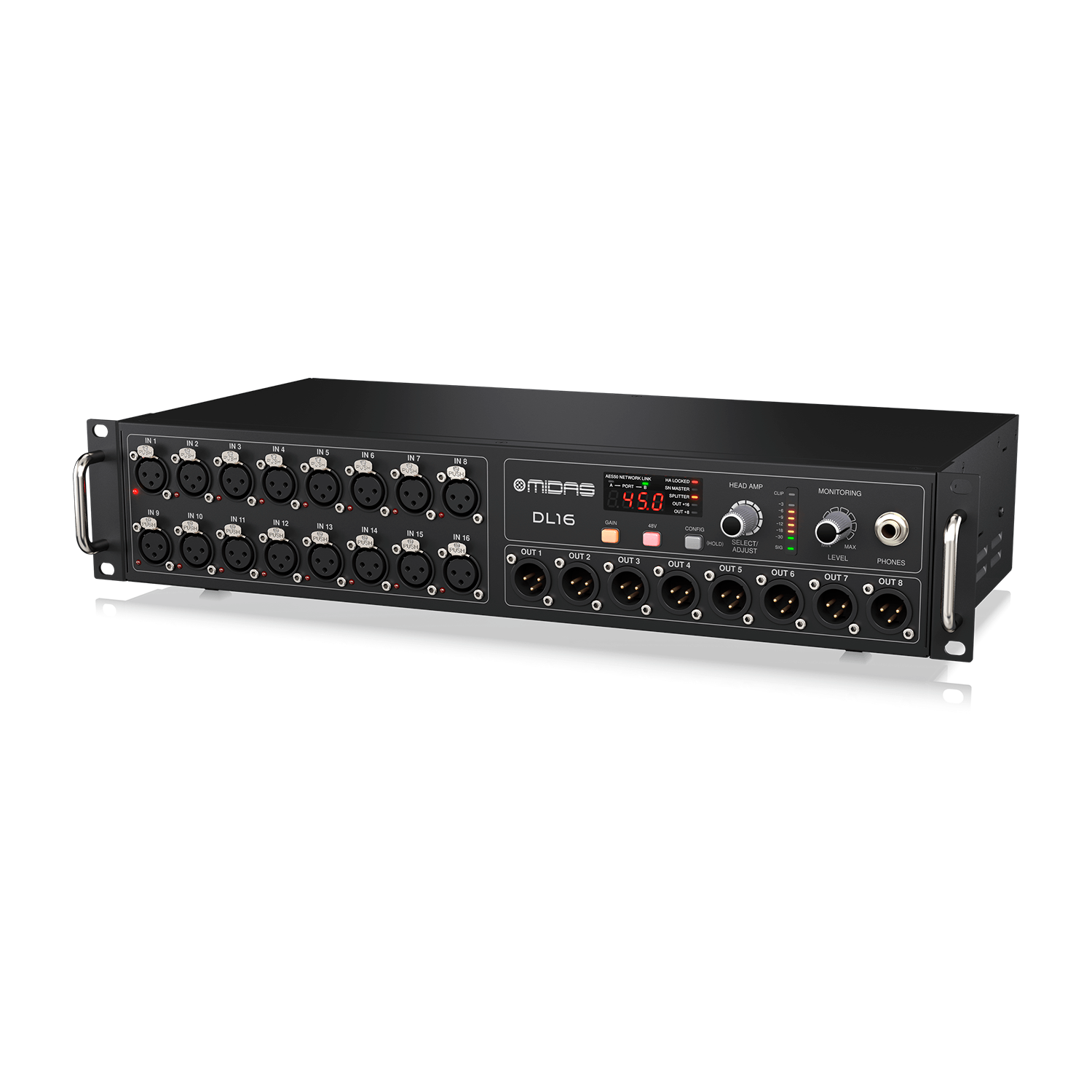 La DL16 es una snake digital de 16 canales de entrada y 8 salidas, equipada con los legendarios preamplificadores MIDAS, diseñada para ofrecer calidad de sonido excepcional en aplicaciones en vivo, estudios y eventos. A través del protocolo AES50, se conecta fácilmente a consolas digitales como M32 y X32, garantizando bajo ruido, alta fidelidad y control remoto de parámetros.