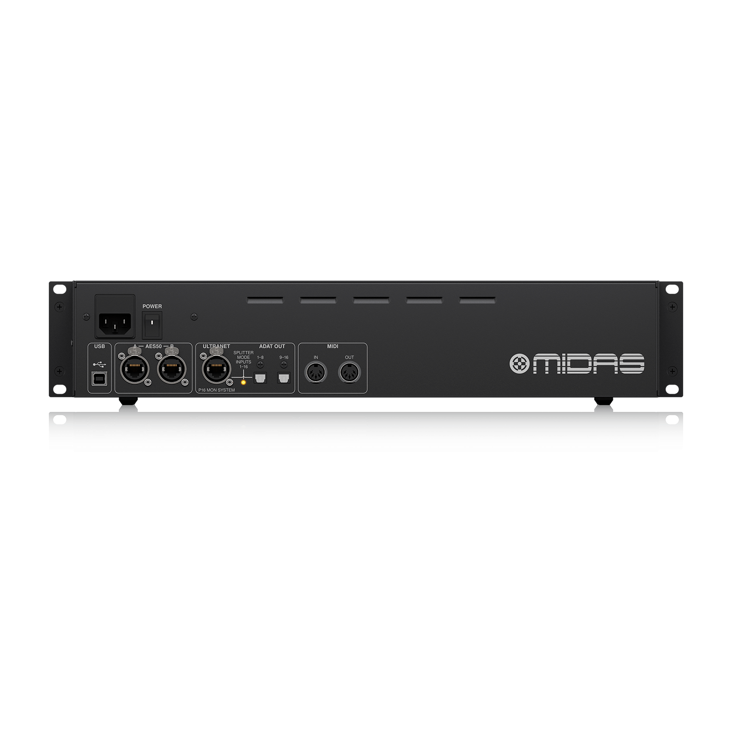 Perfecta para eventos en vivo, estudios móviles, iglesias, teatros y escenarios medianos, donde se requiere una solución de entrada/salida confiable, escalable y de alta fidelidad, compatible con los ecosistemas AES50 de MIDAS y Behringer.