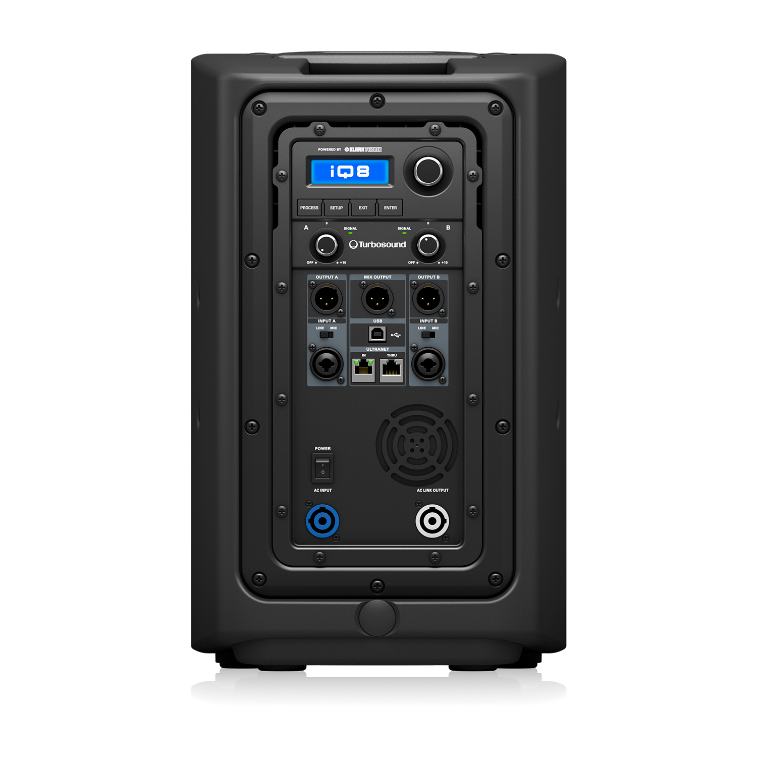 El TURBOSOUND iQ8 ofrece un rendimiento profesional en un tamaño compacto, ideal para espacios reducidos sin comprometer la calidad de audio. Equipa un altavoz de 8″ con una potencia de pico de 2,500W y un DSP de 2 canales firmado por KLARK TEKNIK, lo que garantiza una claridad sonora excepcional y gran versatilidad. Su integración con ULTRANET y su compatibilidad con presets de simulación de bocinas TURBOSOUND lo convierten en una solución moderna, inteligente y portátil para refuerzo sonoro de alto nivel.