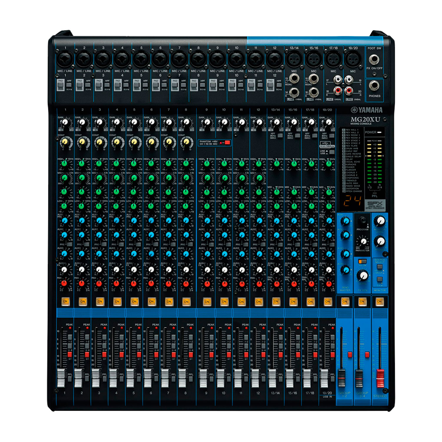 La Yamaha MG20XU es una mezcladora analógica de 20 canales que incorpora efectos digitales SPX y una interfaz de audio USB, ofreciendo una solución completa para aplicaciones en vivo y grabaciones. Su diseño intuitivo y características avanzadas la hacen ideal para profesionales que buscan versatilidad y calidad sonora.
