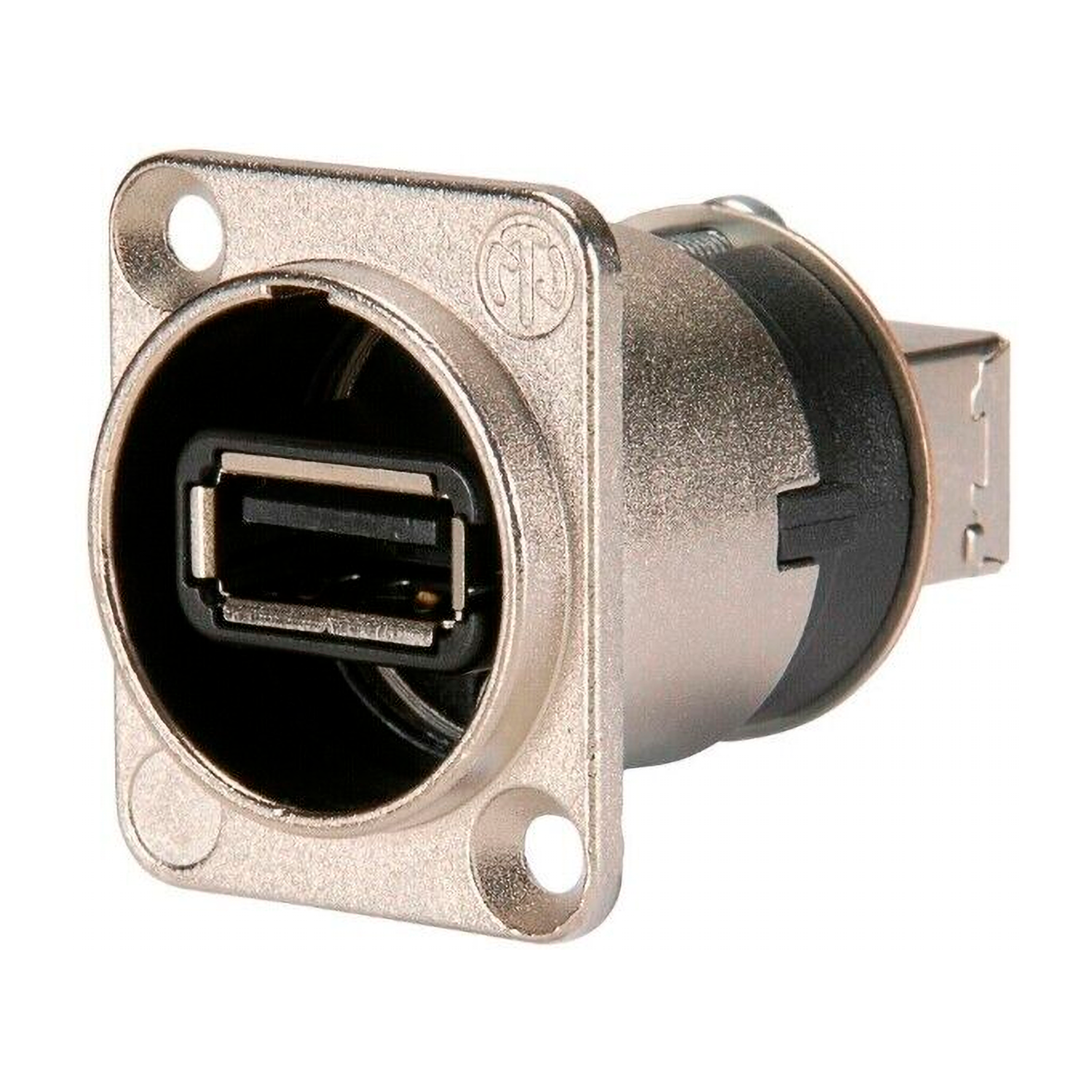 El Neutrik NAUSB-W es un adaptador USB 2.0 reversible que permite la conexión entre conectores tipo A y B, montado en un chasis estándar tipo D de níquel. Diseñado para aplicaciones profesionales, ofrece una solución confiable y duradera para la integración de equipos de audio, video e informática.