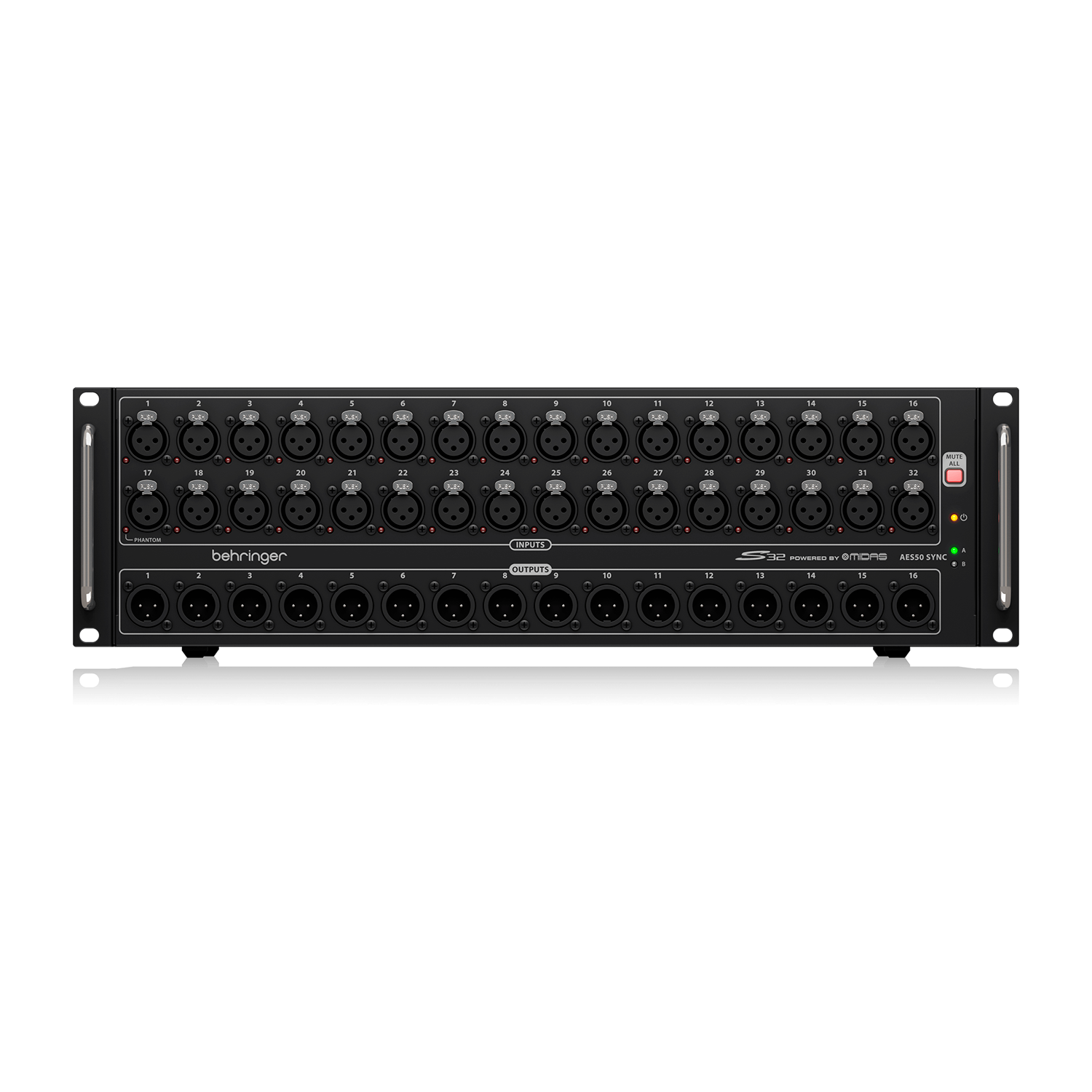 El S32 es el stagebox digital definitivo para integraciones profesionales con consolas X32, M32 y sistemas compatibles con AES50. Con 32 preamplificadores MIDAS de alta gama, 16 salidas XLR, doble puerto AES50 y monitoreo Ultranet, este snake digital lleva la flexibilidad, escalabilidad y claridad de señal a un nuevo nivel, todo en una sola unidad de 3U.