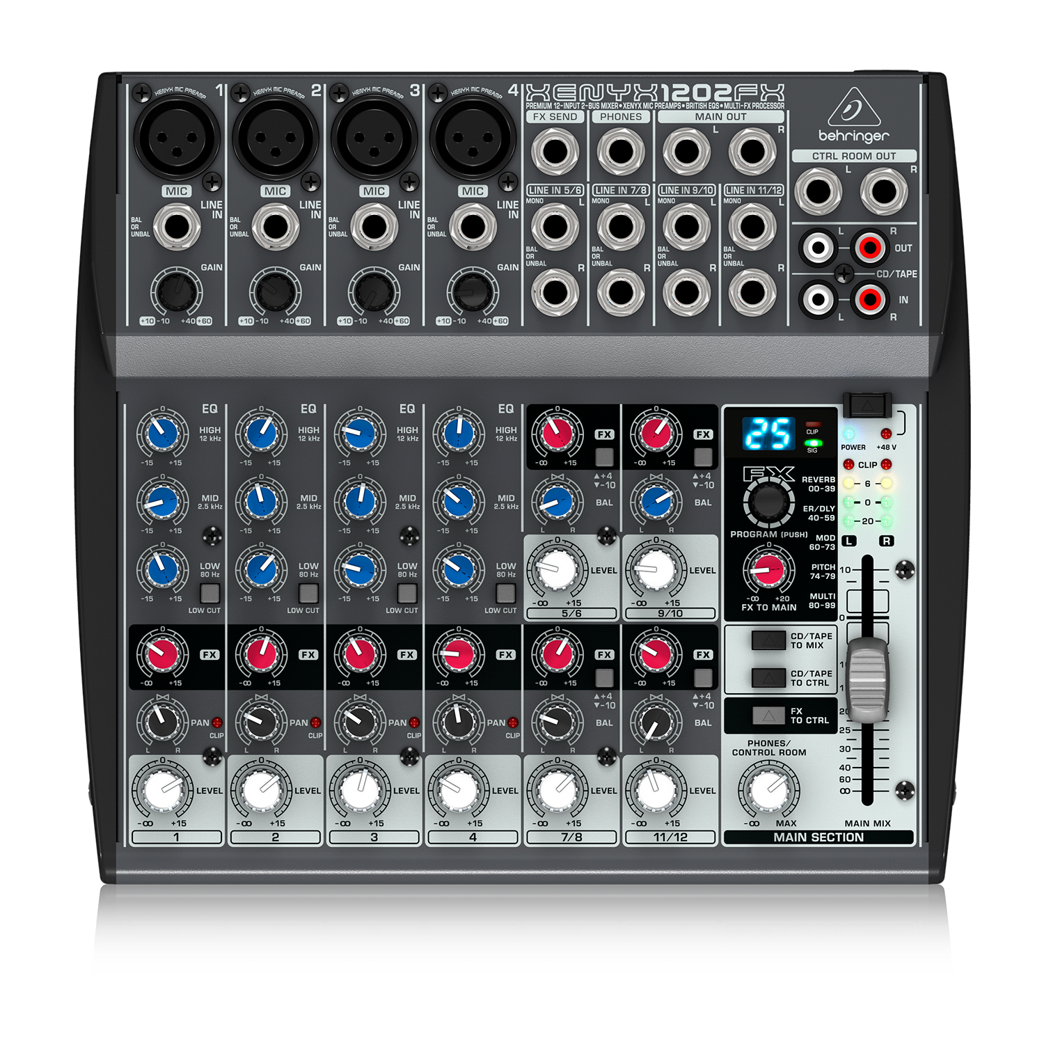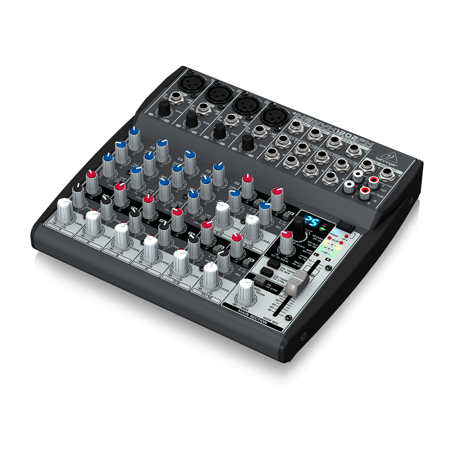 La XENYX 1202FX es una mezcladora compacta de 12 entradas con efectos integrados, diseñada para ofrecer una solución profesional a músicos, creadores de contenido, pequeñas instalaciones fijas y técnicos de sonido móvil. Cuenta con 4 preamplificadores XENYX, ecualizador estilo británico y procesador multiefectos de 24 bits, lo que la convierte en una herramienta potente en un formato que cabe en cualquier mochila… o maleta de guerra.