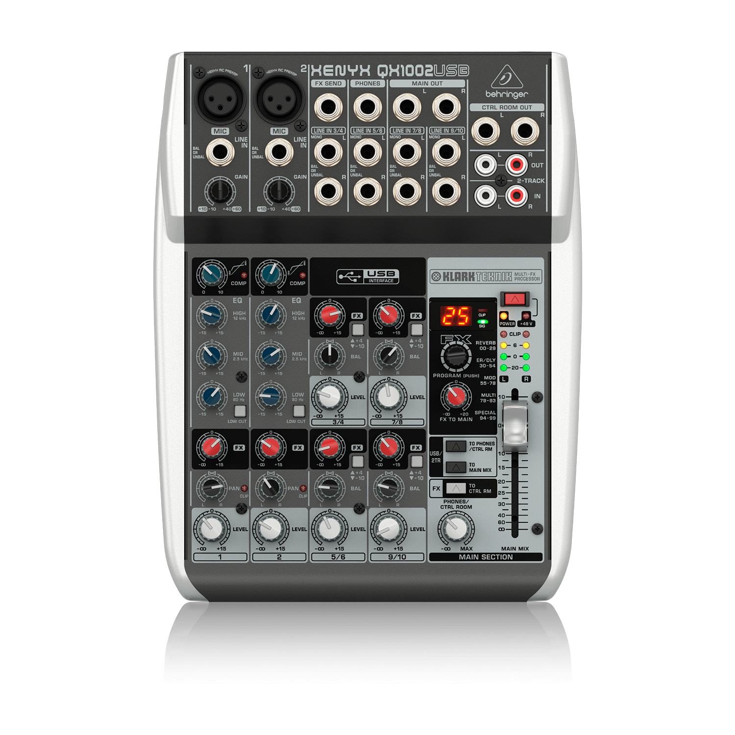 La QX1002USB de BEHRINGER es una mezcladora pensada para creadores de contenido, músicos en movimiento y configuraciones de audio que requieren máxima funcionalidad en mínimo espacio. Con efectos digitales de alta calidad y compresores integrados, todo lo que necesitas para sonar profesional cabe literalmente en tu mochila.