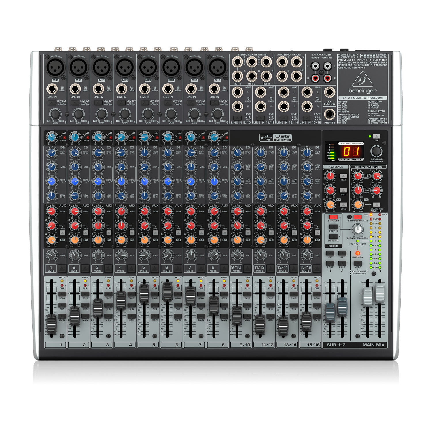 La X2222USB combina el sonido cálido del mundo análogo con la flexibilidad digital moderna. Con 8 preamplificadores XENYX de calidad de estudio, procesador de efectos de 24 bits y interfaz USB integrada, esta consola es una solución todo-en-uno para producción musical, sonido en vivo, podcasting y grabación casera. Compacta, poderosa y lista para cualquier batalla sonora.