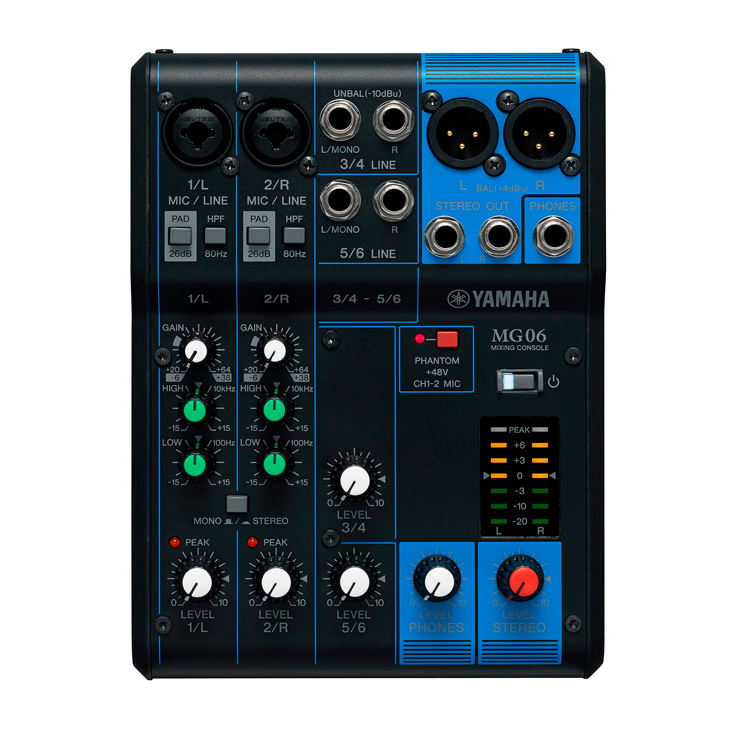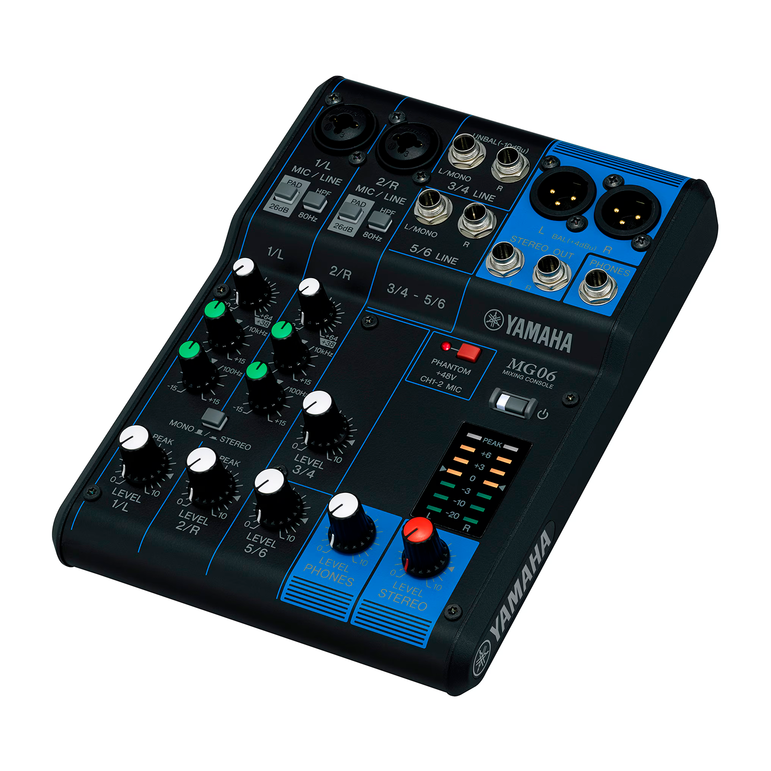La Yamaha MG06 es una mezcladora analógica ultracompacta de 6 canales, diseñada para ofrecer un rendimiento de audio profesional en un formato portátil. Ideal para aplicaciones en vivo, grabaciones caseras y configuraciones móviles, combina facilidad de uso con una construcción robusta y componentes de alta calidad.