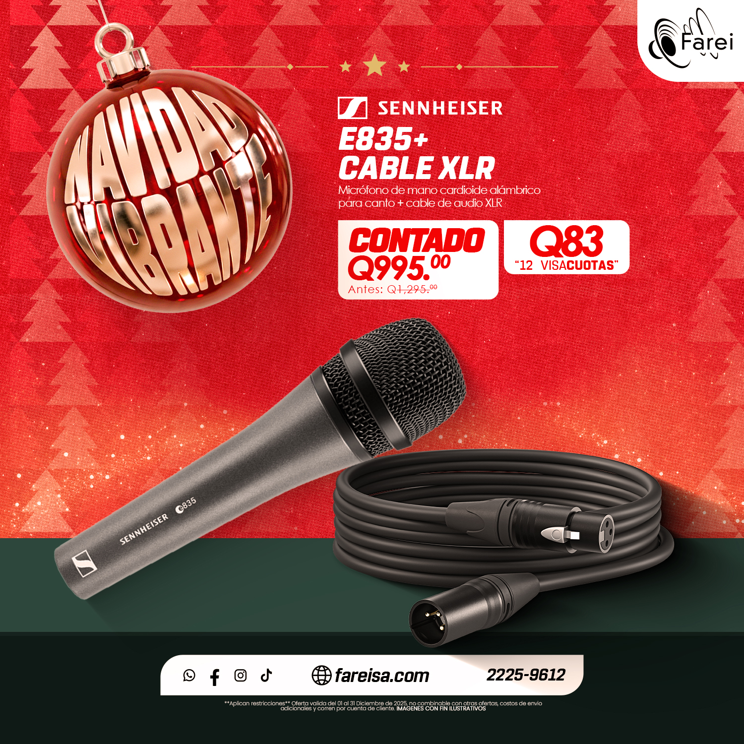 Micrófono de mano cardioide alámbrico para canto + cable de audio XLR