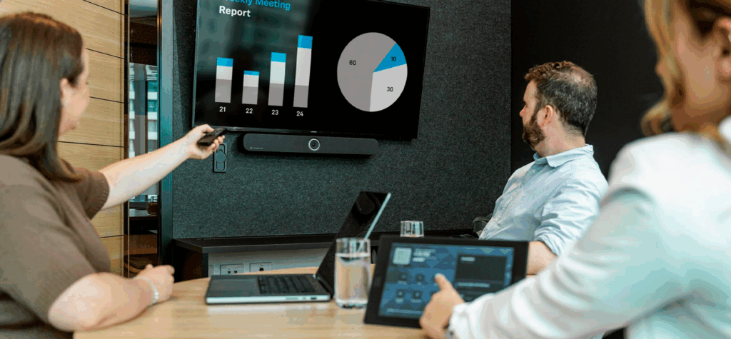 Integramos equipos de videoconferencia y sistemas audiovisuales para empresas que buscan mejorar su productividad y comunicación híbrida: